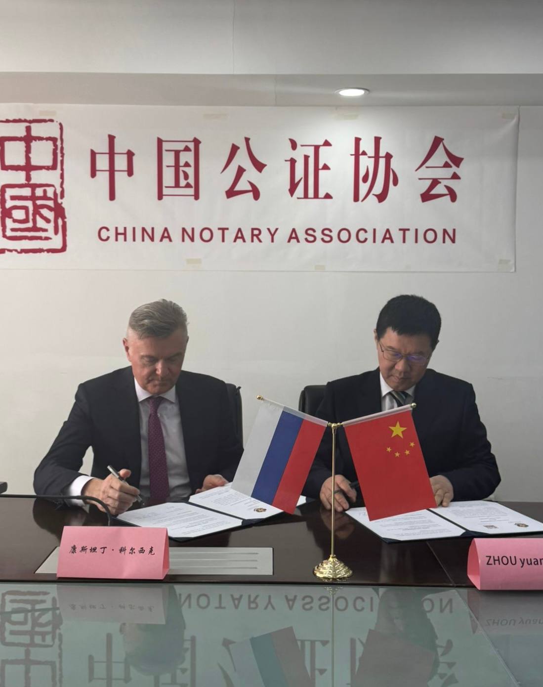 Представители руководства российского и китайского нотариатов ответили на вопросы своих коллег, а также обсудили пути дальнейшего сотрудничества. По итогам встречи был подписан меморандум о взаимопонимании между Федеральной нотариальной палатой и Ассоциацией нотариусов Китая.